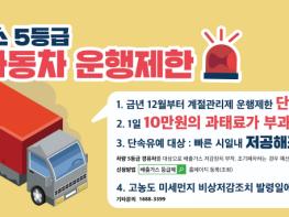 단, 경기도는 저공해조치 신청차량, 저감장치 미개발·장착불가 차량에 대해 내년 3월까지 한시적으로 운행제한을 유예하지만 서울과 인천지역을 통과할 때는 단속될 수 있다. 저공해조치 신청은 자동차배출가스등급제(https://emissiongrade.mecar.or.kr)에서 신청 가능하다.