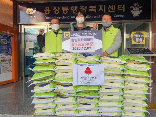용상동 소재 한솔식자재마트에서는 코로나19로 어려운 연말을 보내고 있는 이웃 주민들에게 전해달라며 쌀 10㎏단위 50포(150만 원 상당)를 용상동지역사회보장협의체에 기탁했다.
