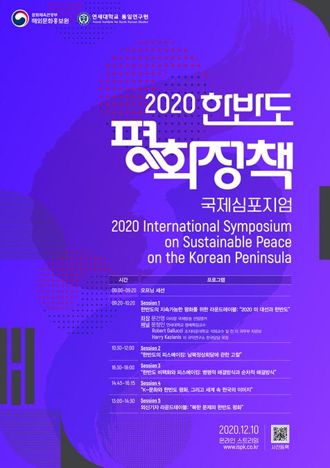 문화체육관광부 해외문화홍보원은 연세대학교 통일연구원과 함께 12월 10일(목) 연세대학교 백양누리 그랜드볼룸에서 ‘2020 한반도 평화정책 국제심포지엄’을 개최한다. 이번 행사는 코로나19 상황을 고려해 온라인으로도 생중계(www.ispk.co.kr)한다.