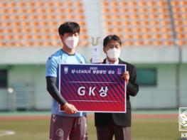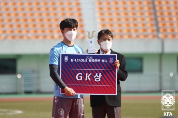 선문대 역사상 첫 U리그 왕중왕전 우승을 이뤄낸 수문장 김현은 자신감에 찬 목소리로 답했다. 선문대는 5일 김천종합운동장에서 열린 동국대와의 2020 U리그 왕중왕전 결승전에서 2-1 승리를 거두며 우승을 차지했다.