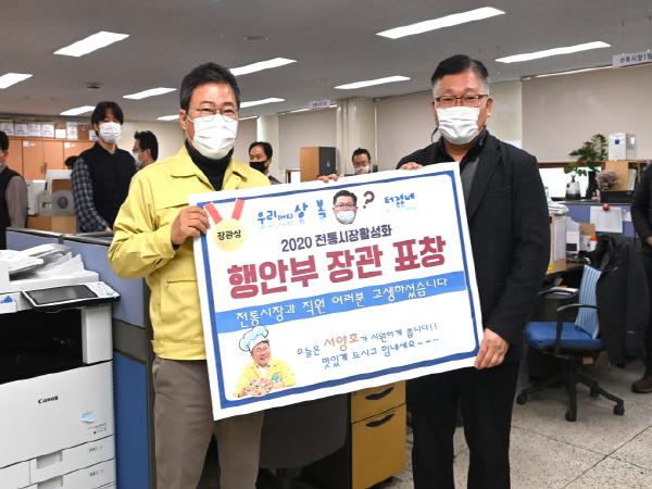 이번 표창은 중소벤처기업부 주관으로 전통시장 활성화에 기여한 관계자들의 사기진작 및 자긍심을 고취하기 위해 전통시장 발전에 이바지한 공적이 뛰어난 시장, 지자체 등에 수여하는 상이다.