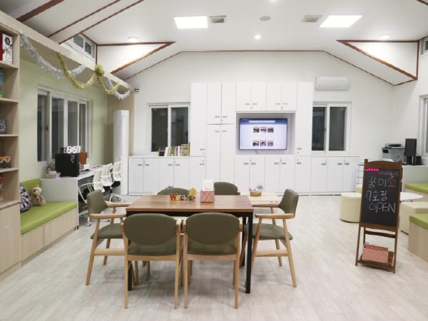 이번에 둔촌2동 구립약수경로당 2층(강동구 진황도로 150-8)에 조성한 7호점 역시 어르신과 아동, 주민, 아동복지 관계자의 의견을 최대한 반영해 이용자 안전을 최우선에 두고 가구 등을 배치했다. 노인과 아동의 신체적 특성을 고려해 성별·연령 등에 구애받지 않고 모두에게 편리하도록 유니버설 디자인을 적용했으며, 아이들이 쉬고 놀면서 자유롭게 활동할 수 있는 창의적 공간으로 꾸몄다.