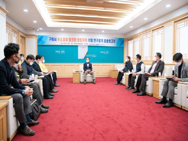 이 날 보고회는 수소 산업 관련기업 및 관련 부서 공무원 10여 명이 참석한 가운데 수소 산업 육성을 위한 구미시의 중장기 비전과 추진전략에 대한 의견을 주고받았다.