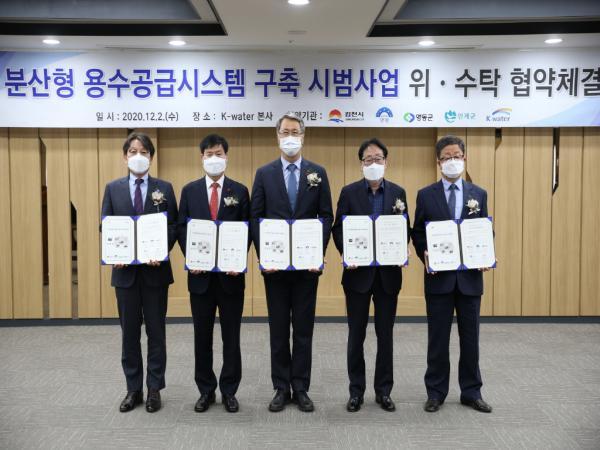 김천시와 K-water는 12월 2일 한국수자원공사 본사에서“분산형 용수공급시스템 구축 시범사업 위수탁 협약”을 체결했다.
