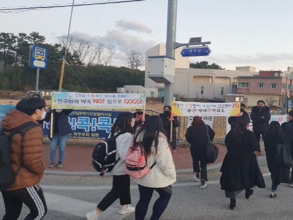 주간에는 수능시험을 치른 학생들을 격려하면서 음주·흡연 등 일탈행위를 하지 않도록 계도하고, 코로나19 확산방지를 위해 친구들과의 약속을 자제하고 집으로 갈 수 있도록 아웃리치를 진행하였으며, 야간에는 유관기관과 합동으로 울진읍 일대 학교 주변, PC방, 청소년 밀집지역 등을 중심으로 청소년의 일탈행위를 벌이는 것에 대한 예방활동을 진행했다.
