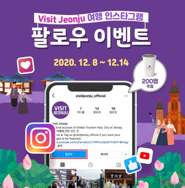 이와 함께 시는 8일부터 14일까지 인스타그램@VisitJeonju_official 계정을 팔로우한 뒤 친구를 태그한 구독자 200여 명에게 기프티콘을 증정하는 이벤트도 진행한다. SNS를 이용할 수 있는 국민이라면 누구나 응모할 수 있다.