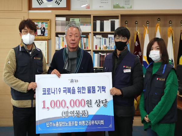 지난 3일에는 악양면 소재 사회적기업 에코맘의산골이유식 오천호 대표가 군수 집무실을 방문해 2000만원 상당의 마스크 5만장을 기부했으며, 하동군공무직노동조합(대표 남길영)도 100만원 상당의 마스크 1200장을 후원했다.