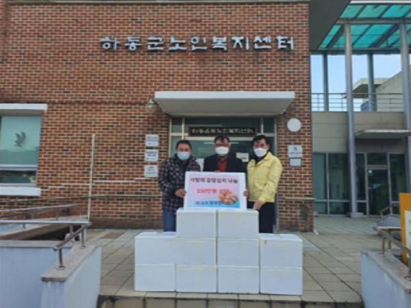 하동은빛노인복지센터는 남경 정재한 대표가 코로나19로 어려운 상황임에도 지난 3일 자비로 마련한 150만원 상당의 김장김치 200㎏를 센터에 기부했다고 7일 밝혔다.