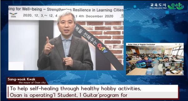 이어 곽 시장은 ‘건강과 웰빙, 그린학습도시 오산’이라는 주제로 1인1악기와 작은정원, 오산천 복원사업을 우수사례로 발표해 평생학습을 통한 회복력 있는 학습도시 오산의 모습을 공유했다.