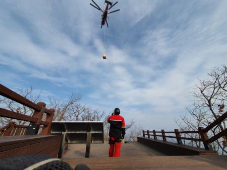 산림청 익산산림항공관리소는 12월 7일 전북 진안군 운장산, 구봉산 정상에 산림청 헬기를 출동시켜 산림사업 자재운반을 실시하였다.