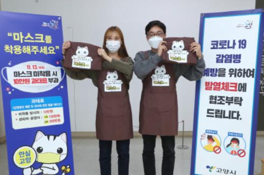 ‘마스크 착용 홍보 앞치마’ 배부 업소는 프랜차이즈형을 제외한 관내 음식점·카페 10,394개소다. 고양시는 매장 규모 200㎡ 이상 업소는 5개, 200㎡ 미만 업소는 3개 등 총 32,666개의 앞치마를 오는 12월 14일까지 배부 완료한다는 계획이다.