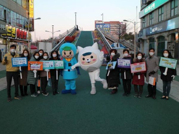 이번 캠페인은 코로나19 발생 및 사회적 거리두기 강화에 따른 상권침체로 어려움을 겪고 있는 정왕2동 관내 서촌상가 상인들을 응원하기 위해 기획됐다.