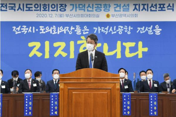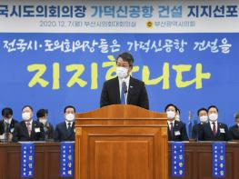 전국광역시도의장협의회 김한종 회장(전라남도의회 의장)은 지지발언을 통해 “지방과 수도권의 격차가 날로 벌어지며 지방이 겪는 박탈감과 위기의식이 점점 커지고 있다”고 지적하며, “이러한 측면에서 가덕신공항은 남부권 전체를 아우르는 지역균형발전의 마중물이 되고, 24시간 운영되는 새로운 물류 허브공항은 동남권 발전에 기폭제가 될 것은 분명하다”며 조속한 신공항 건설을 기원했다.