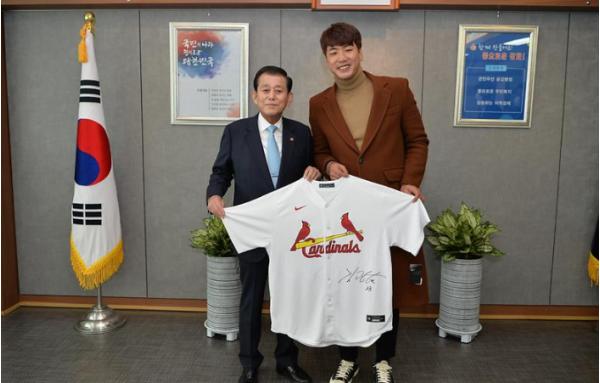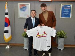 유천호 강화군수가 비시즌을 맞아 지난 4일 강화군을 방문한 메이저리거 김광현(32세, 세이트루이스) 선수를 격려했다.
