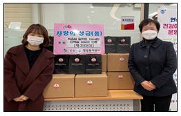 홍민영 대표는 “코로나19의 장기화로 생활에 어려움을 겪고 있는 지역사회 건강 취약계층에게 작은 도움이라도 되고자 식품을 기부하게 됐다”며 “앞으로도 기회가 된다면 나눔 활동에 적극 참여하고 싶다”는 의사를 밝혔다.