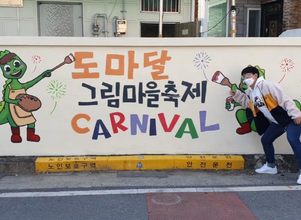 방문객의 눈길을 끄는 팝아트 벽면 5곳과 인증 사진을 찍을 수 있는 포토존 2곳, 그리고 ‘도마달 그림마을 축제’ 장소를 알리는 귀여운 도마뱀 벽화 1곳을 조성했다.