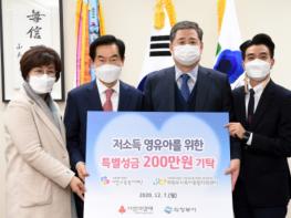의정부시는 사회복지법인 사랑교육복지재단이 12월 7일 저소득 영유아를 위한 성금 200만 원을 기탁했다고 밝혔다.