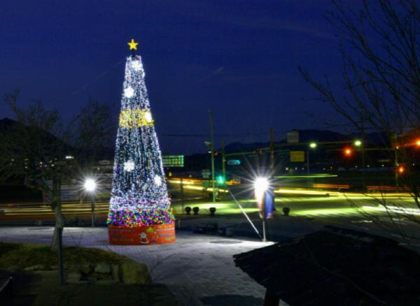 순창군이 다가오는 성탄절을 맞아 크리스마스 트리를 순창고등학교 사거리 앞 독대마당에 설치해 연말연시 분위기를 자아내고 있다.