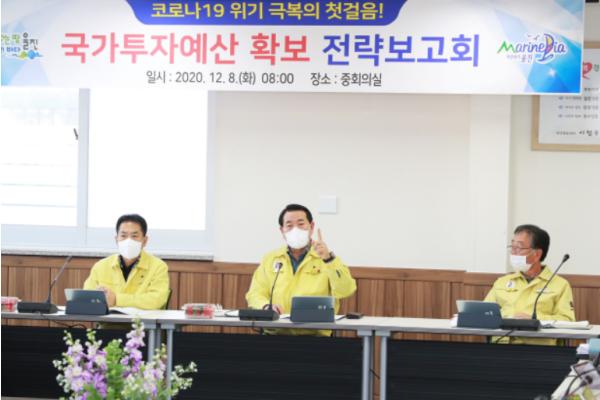 울진군은 8일 군청 중회의실에서 국가투자예산 확보 전략보고회를 개최하여 국비 확보 활동상황 사례 보고 및 국·도비 확보를 위한 향후 계획과 대응 방안에 대해 심도 있게 논의 했다.