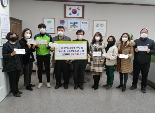 평내호평상가번영회(회장 백승운)는 지난 7일 호평평내행정복지센터(센터장 이영재)를 방문해 동부희망케어센터에 반찬쿠폰(약60만원)을 기탁했다.