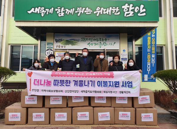 함안군 산인면 지역사회보장협의체(위원장 이선애)는 지난 7일 관내 저소득 취약계층 33가구를 대상으로 ‘따뜻한 겨울나기’이불 지원 사업을 실시했다.