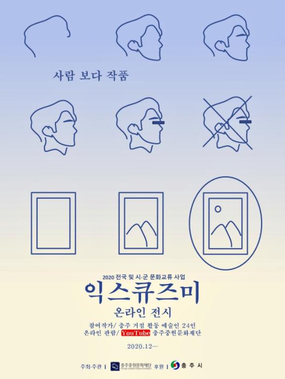 (재)충주중원문화재단은 코로나19 여파로 침체한 충주 문화예술계의 활력을 불어넣기 위해 2020 전국 및 시·군 교류사업 ‘익스큐즈미 온라인 전시'를 추진한다고 밝혔다.