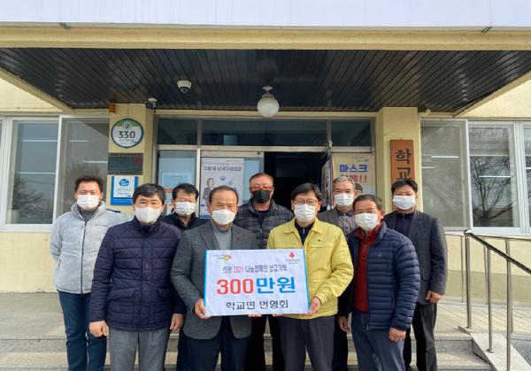 함평군 학교면번영회는 지난 7일 면사무소를 찾아 ‘희망 2021 나눔캠페인’ 일환으로 이웃돕기성금 300만 원을 기탁했다.