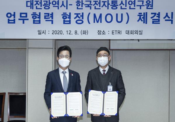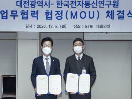 대전시와 한국전자통신연구원은 8일 오전 11시, ETRI에서 ‘인공지능(AI) 기반 지능형도시 대전 구축’을 위한 협약을 체결했다.