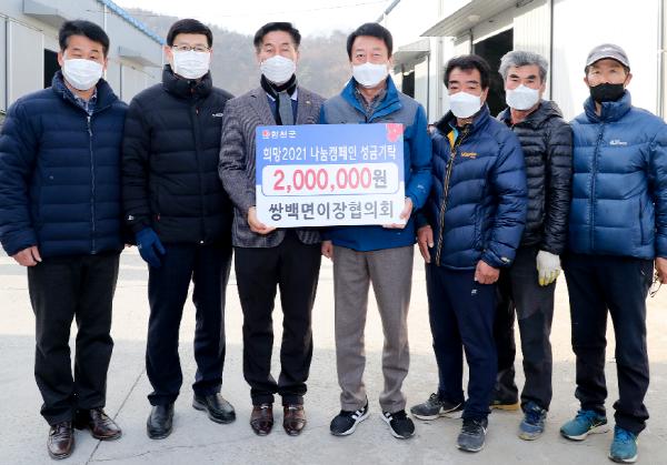 합천군 쌍백면 이장협의회(회장 성기태)는 12월 8일 오전 쌍백면 수매현장에서 기탁식을 가지고 불우이웃세대에 전달해달라며 현금 200만원을 기탁했다.