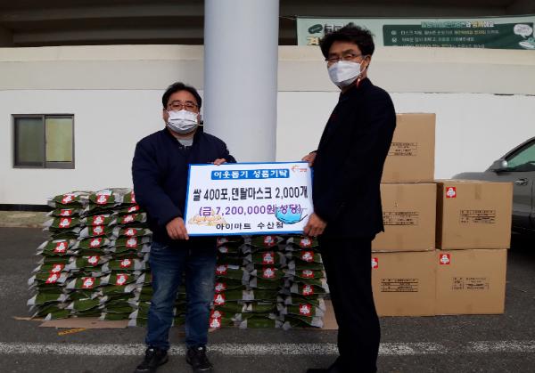 아이마트 수산점(사장 전종명)은 연말연시를 맞이해 이웃돕기 물품 쌀(400포/4kg)과 덴탈마스크(10,000장)을 8일 밀양시에 기탁했다.