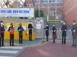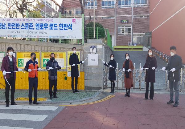 창원시는 8일 ‘SOS랩 구축 및 SW서비스 개발사업’의 시범운영지역으로 선정된 창원 용원초등학교에서 안전한 스쿨존 만들기를 위한 ‘옐로로드’조성완료를 기념하는 현판식을 개최했다고 밝혔다.