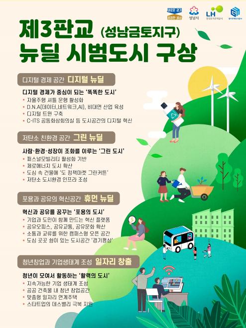 경기도가 제3판교(성남금토지구)를 뉴딜 시범도시로 조성한다. 뉴딜 시범도시란 정부와 경기도의 뉴딜을 집약한 축소판으로 D.N.A(데이터, 5G, AI), 비대면 산업을 육성하고 도시 내 저탄소 인프라를 구축해 혁신과 일자리를 창출하며 청년과 신혼부부의 주거안정을 계획한 도시를 말한다.