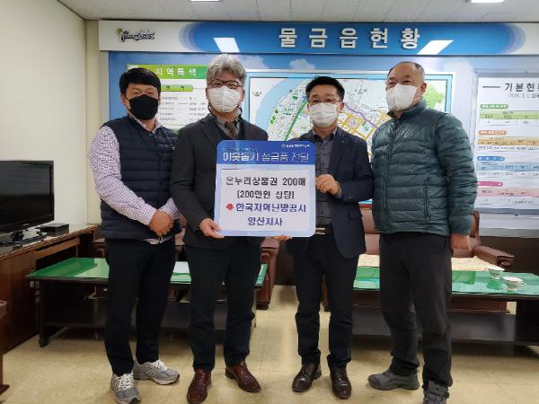 이정희 물금읍장은 “물금읍민을 위한 한국지역난방공사의 도움에 진심으로 감사드린다”며 “관내 어려운 주민에게 따뜻한 마음을 잘 전달하겠다”고 말했다.