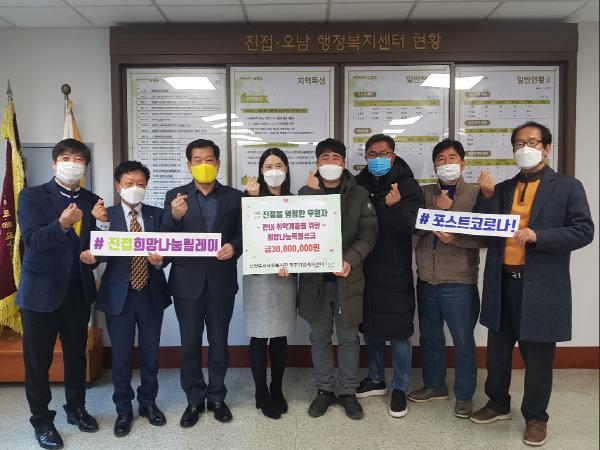 이날 진접오남행정복지센터 읍장실에서 열린 전달식을 통해 기탁된 성금은 코로나19로 예기치 못한 위기상황을 겪고 있는 취약계층 지원에 사용될 예정이다.