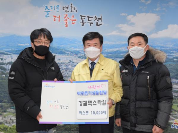 동두천시는 ㈜강길텍스타일에서 7일 동두천시자원봉사센터에 마스크 1만장을 전달했다고 밝혔다.