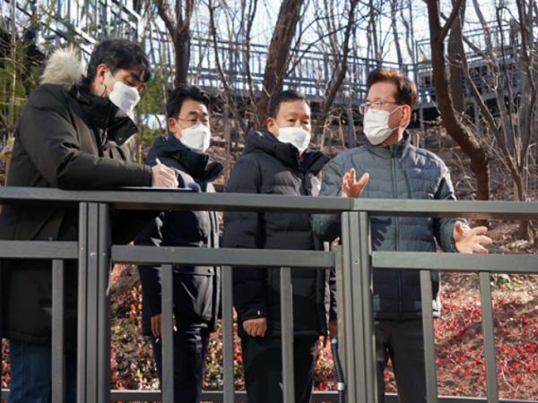 서울특별시 동대문구 유덕열 구청장이 8일 오후 휘경동 산 6-35번지에 조성한 배봉산 무장애길 산책로 현장을 방문해 점검했다.