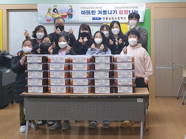 어린이 농부학교 시범사업 운영학교인 안동송현초는 학생들의 인성함양과 정서지능 향상을 위해 구황작물, 채소, 육류, 원예 등 다양한 농작물을 활용한 체험활동을 진행하고 있다. 2020년 마지막 수업은 뜻깊은 나눔으로 마치고 싶다는 아이들의 의견을 따라, 12월 7일 고사리 손으로 직접 담근 김장김치 28박스를 송하동 지역사회보장협의체에 전달했다.