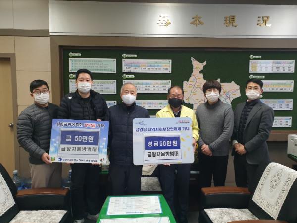 김경호 금왕읍장은 “코로나19로 모두가 힘든 시기임에도 성금을 전달한 금왕자율방범대 대원들에게 감사드리며, 기탁해준 성금이 지역의 우수한 인재 발굴과 금왕읍의 발전을 위해 사용될 수 있도록 더욱 노력하겠다”고 말했다.