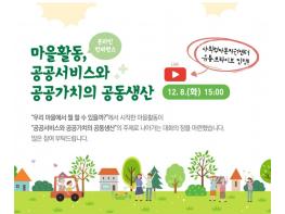 대전시는 8일 오후 3시에 “마을활동, 공공서비스와 공공가치의 공동생산”의 주제로 온라인 컨퍼런스를 개최했다.