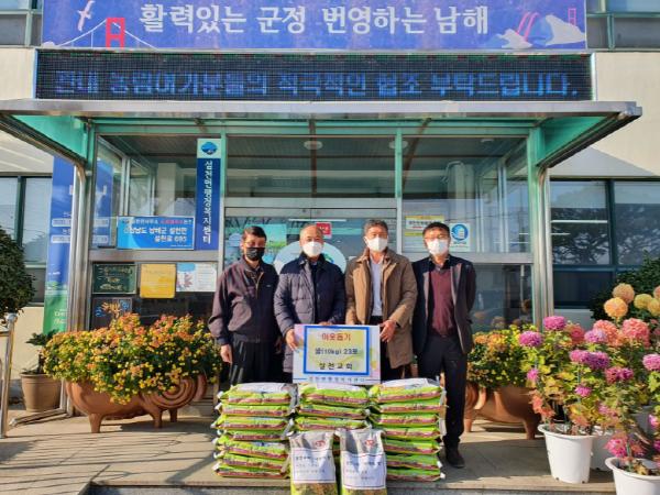 남해군 설천면행정복지센터(면장 김원근)는 8일 설천교회(목사 김성수)에서 연말을 맞이하여 저소득층 지원을 위한 쌀을 기탁했다고 밝혔다.