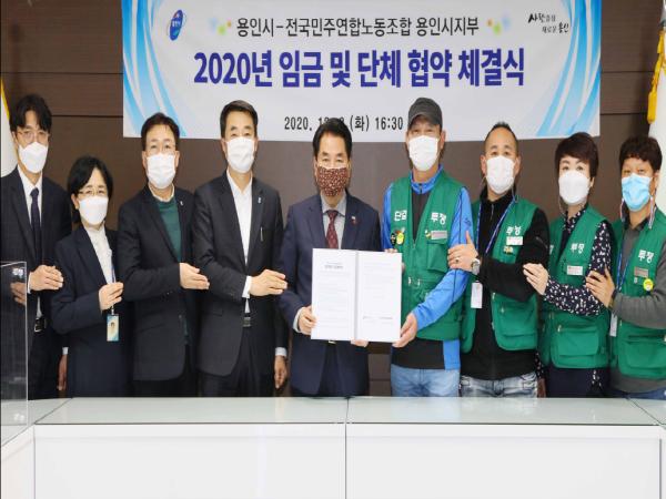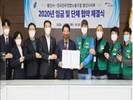 용인시와 전국민주연합노동조합 용인시지부(시 공무직 노조·지부장 최승덕)는?년 임금 및 단체협약’을 체결하고 노사 간 상호 이해와 신뢰를 바탕으로 시정발전을 위해 협력하기로 했다고 9일 밝혔다.