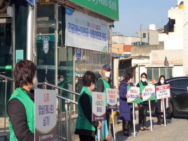 세종특별자치시 연기면 새마을회(회장 김윤제)가 지난 8일 세종중앙농협 앞에서 코로나19 감염예방 및 에너지 절약 등 생명살림 국민운동 캠페인을 전개했다.