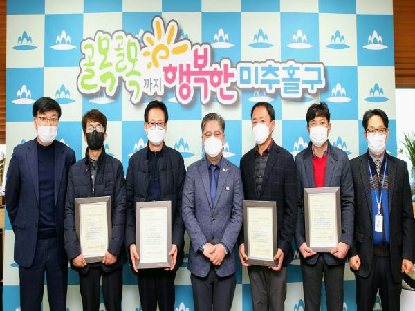인천 미추홀구는 8일 2020년도 자동차관리사업 모범사업자 로 선정된 자동차정비업체 4개소에 지정증을 수여했다.