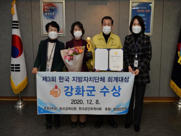 강화군이 지난 8일 전국 243개 지방자치단체를 대상으로 하는 제3회 한국 지방자치단체 회계대상에서 장려상을 수상했다.