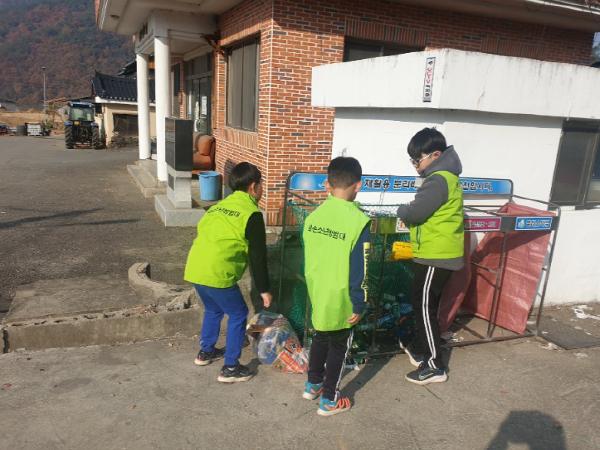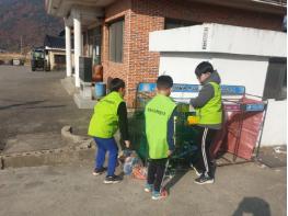 둘째 업무는 분리수거함 근처와 운동기구, 정자 주변에 버려진 쓰레기를 치우는 일이었다. 커피 캔과 담배꽁초, 휴지, 플라스틱 병 등 마을의 지저분한 쓰레기들을 자루에 담아 마을을 깨끗하게 정리하고, 분리 수거를 잘해달라는 팻말까지 직접 세웠다.