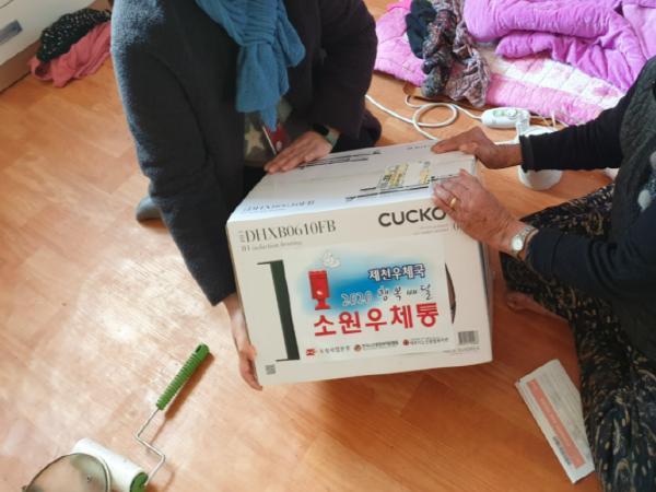 행사를 연계하여 진행한 제천우체국은 “코로나 여파로 힘든 생활을 보내고 계신 어르신들에게 조금이나마 보탬이 되길 바란다.”며 응원의 메시지를 전달했다.