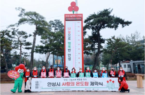 안성시는 지난 7일 안성시 내혜홀광장에서 희망 2021 나눔 캠페인의 시작을 알리는 경기사회복지공동모금회 사랑의 온도탑 제막식을 개최했다고 밝혔다.