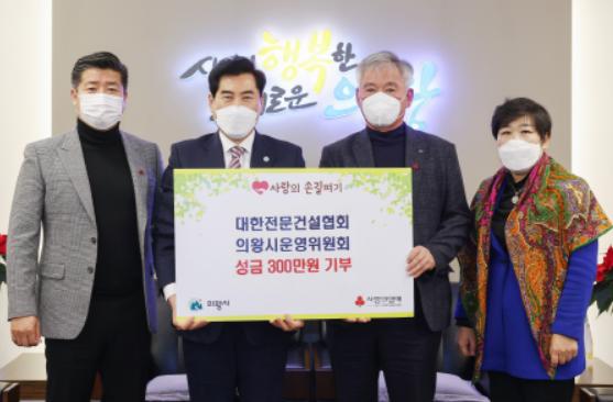 의왕시 대한전문건설협회 의왕시운영위원회에서 저소득층을 지원해달라며 8일 성금 300만원을 의왕시에 기부했다.