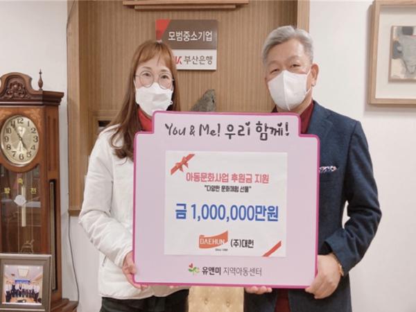 부산광역시 동구는 ㈜대헌에서 유앤미(YOU & ME) 지역아동센터와 아동들의 코로나 우울증 해소를 위한 ‘아동문화사업 후원금’ 전달식을 가졌다고 밝혔다.