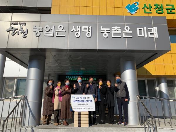 산청군천연염색연구회(회장 김강미)가 직접 만든 수제 한방약초 면마스크 500매를 기부했다.